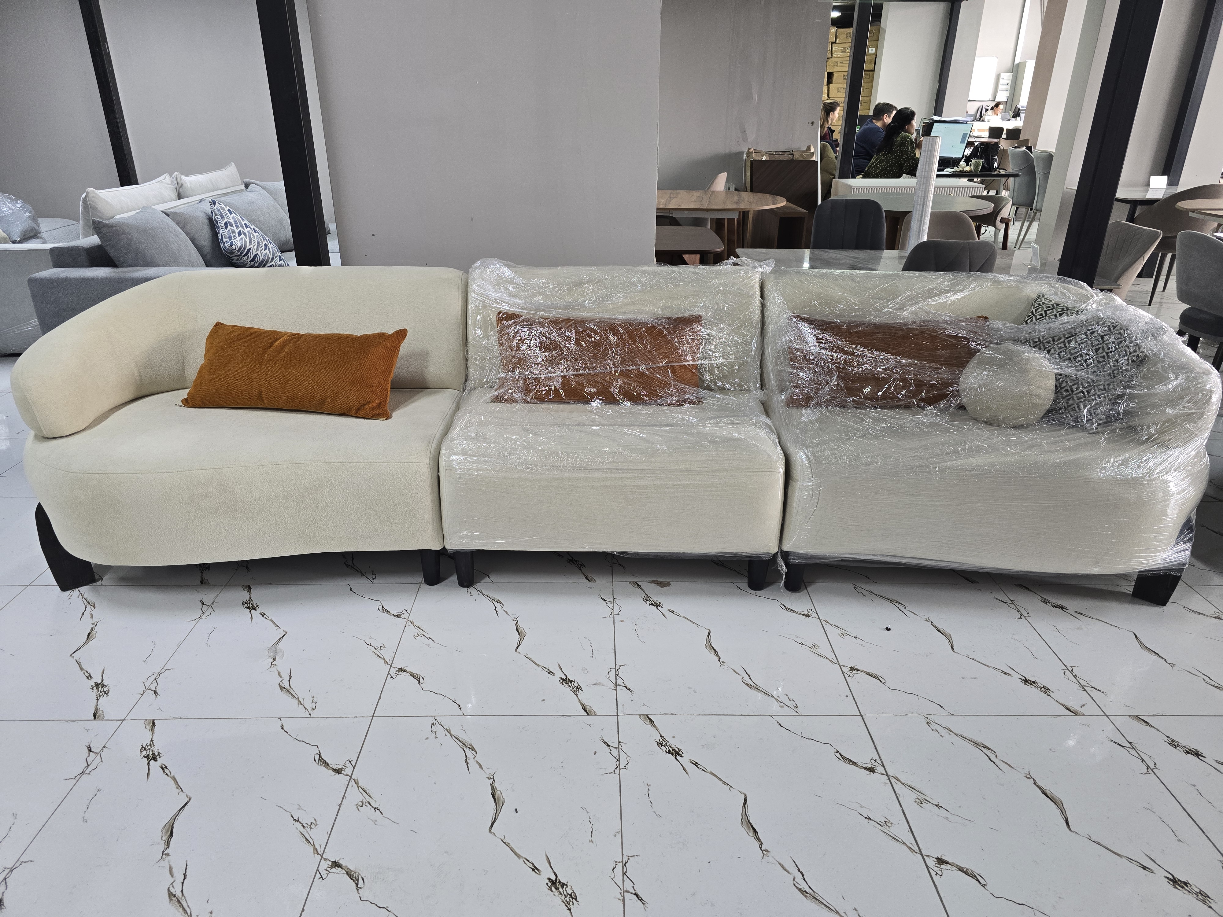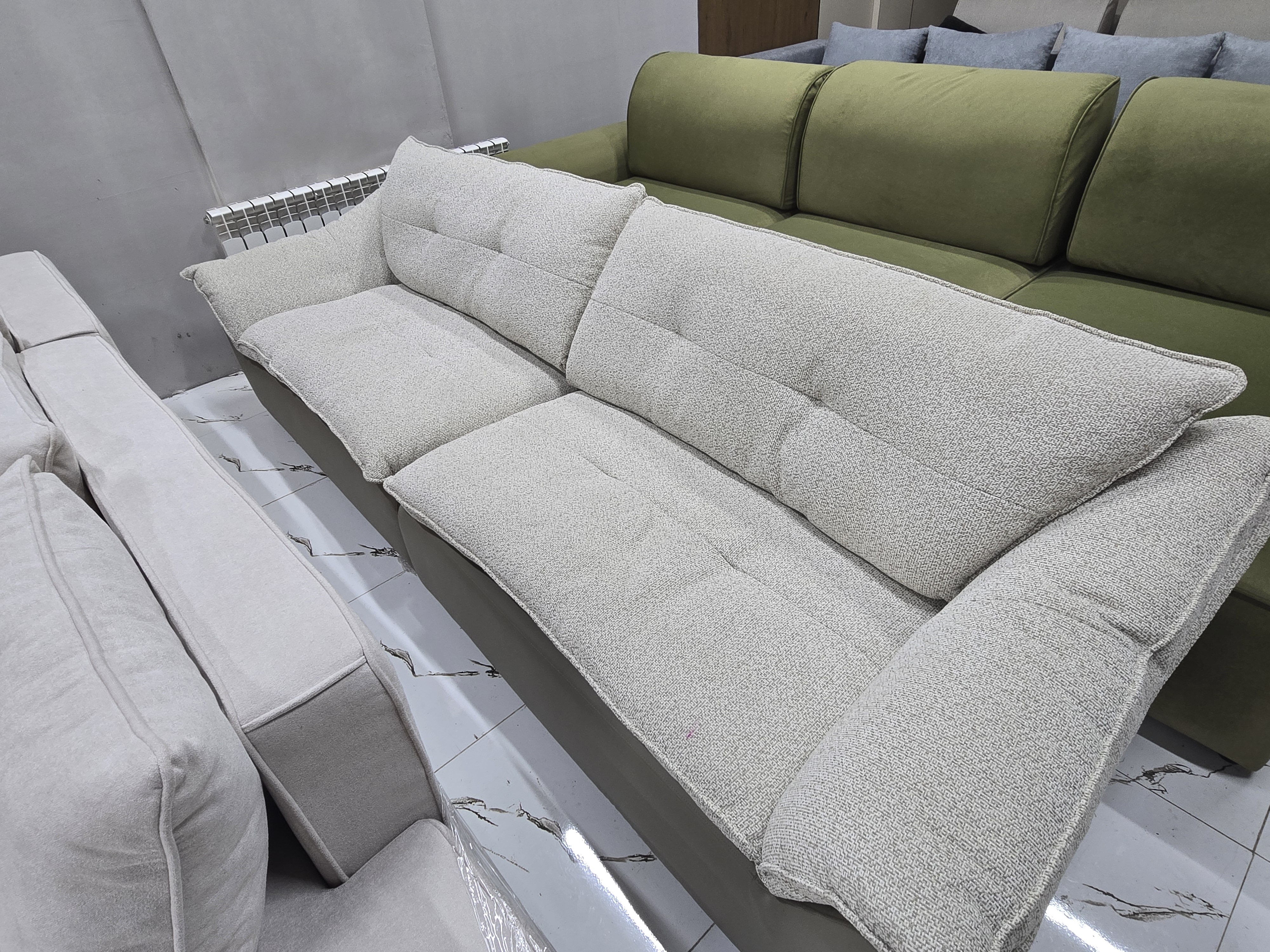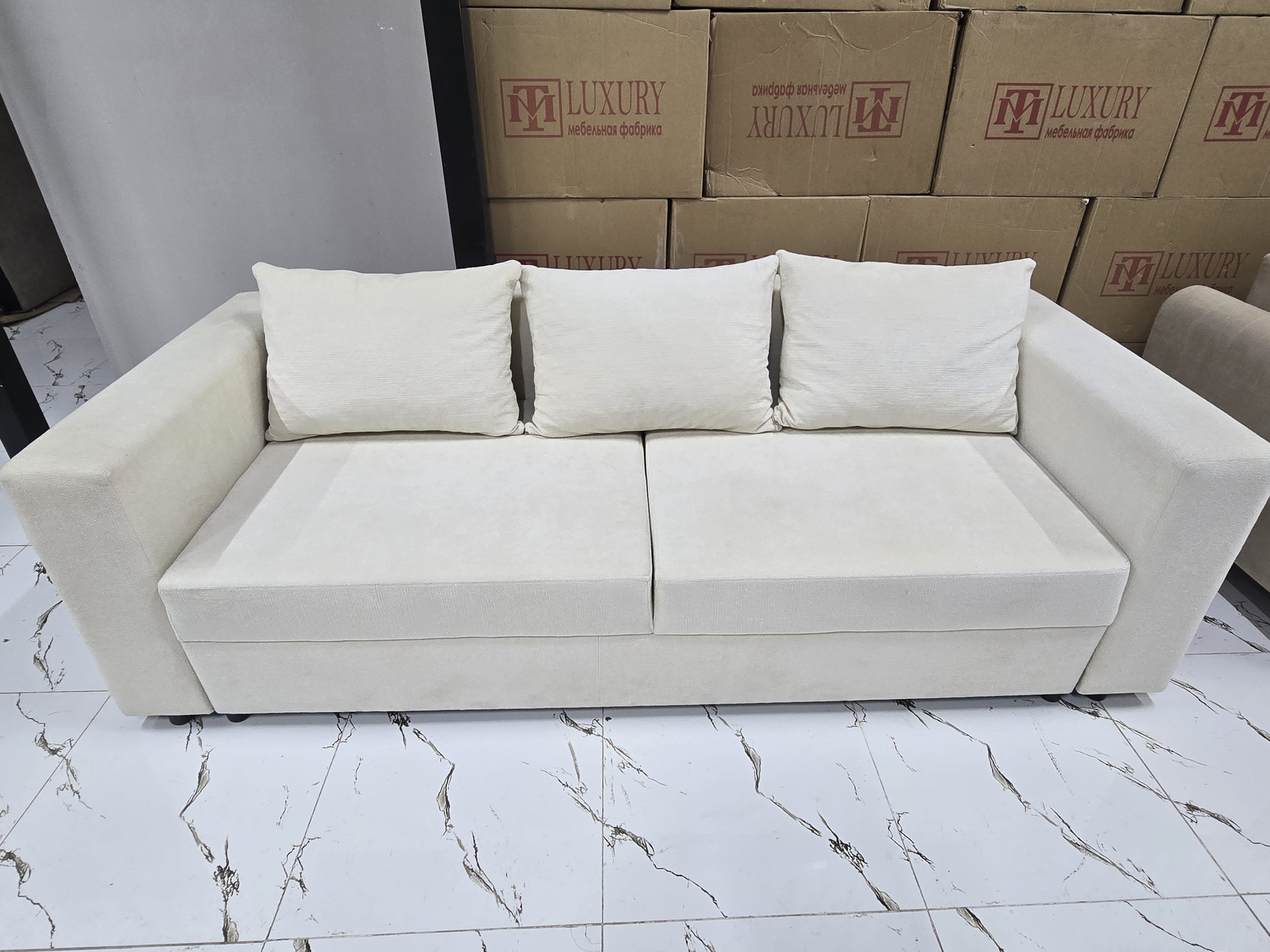 Форма дивана прямой Раскладная конструкция Механизм трансформации евро книжка Обивка ткань Наполнитель независимый пружинный блок Ширина332 см Глубина105 см Высота95 см Цвет бежевый Страна Казахстан
