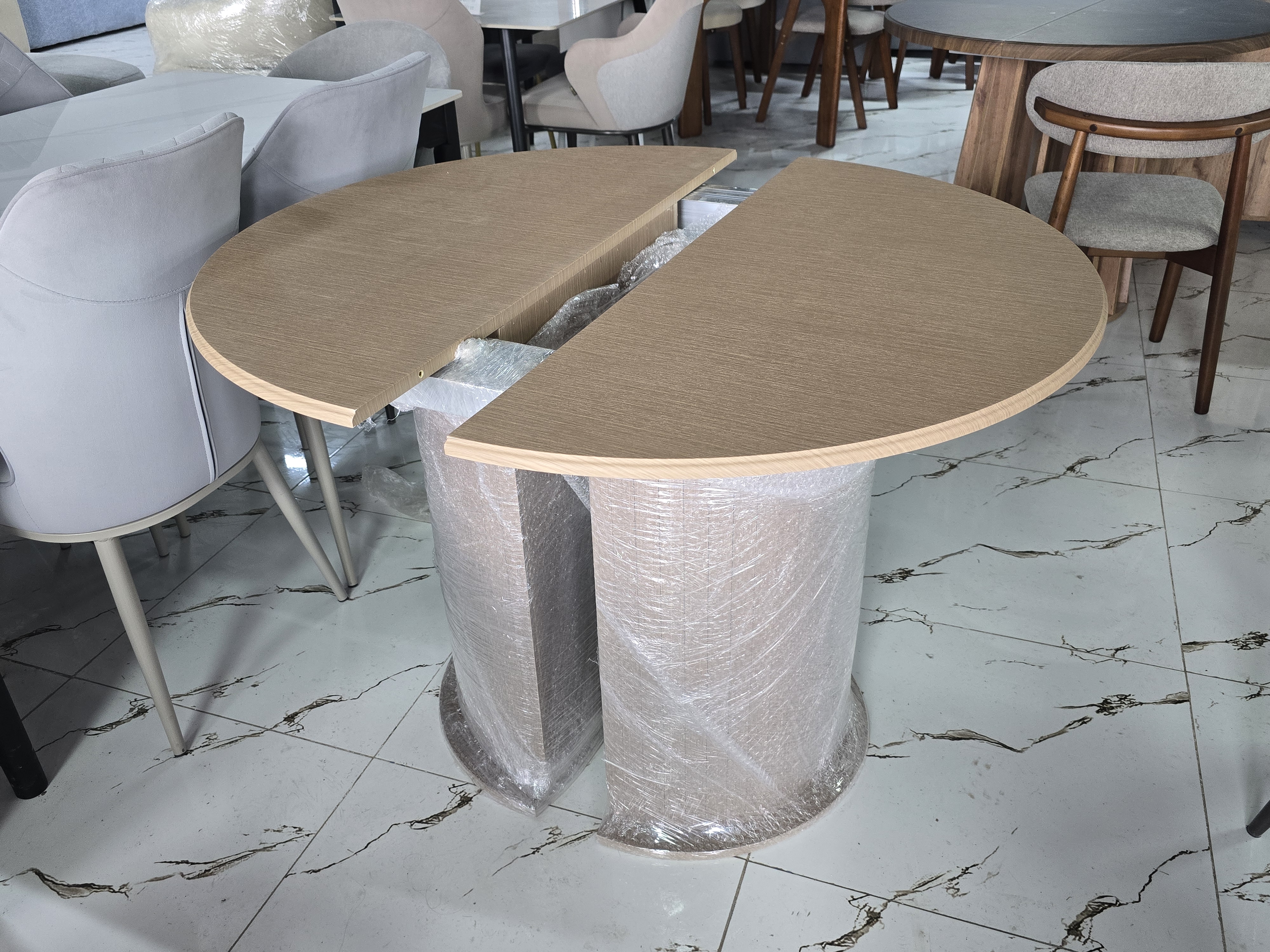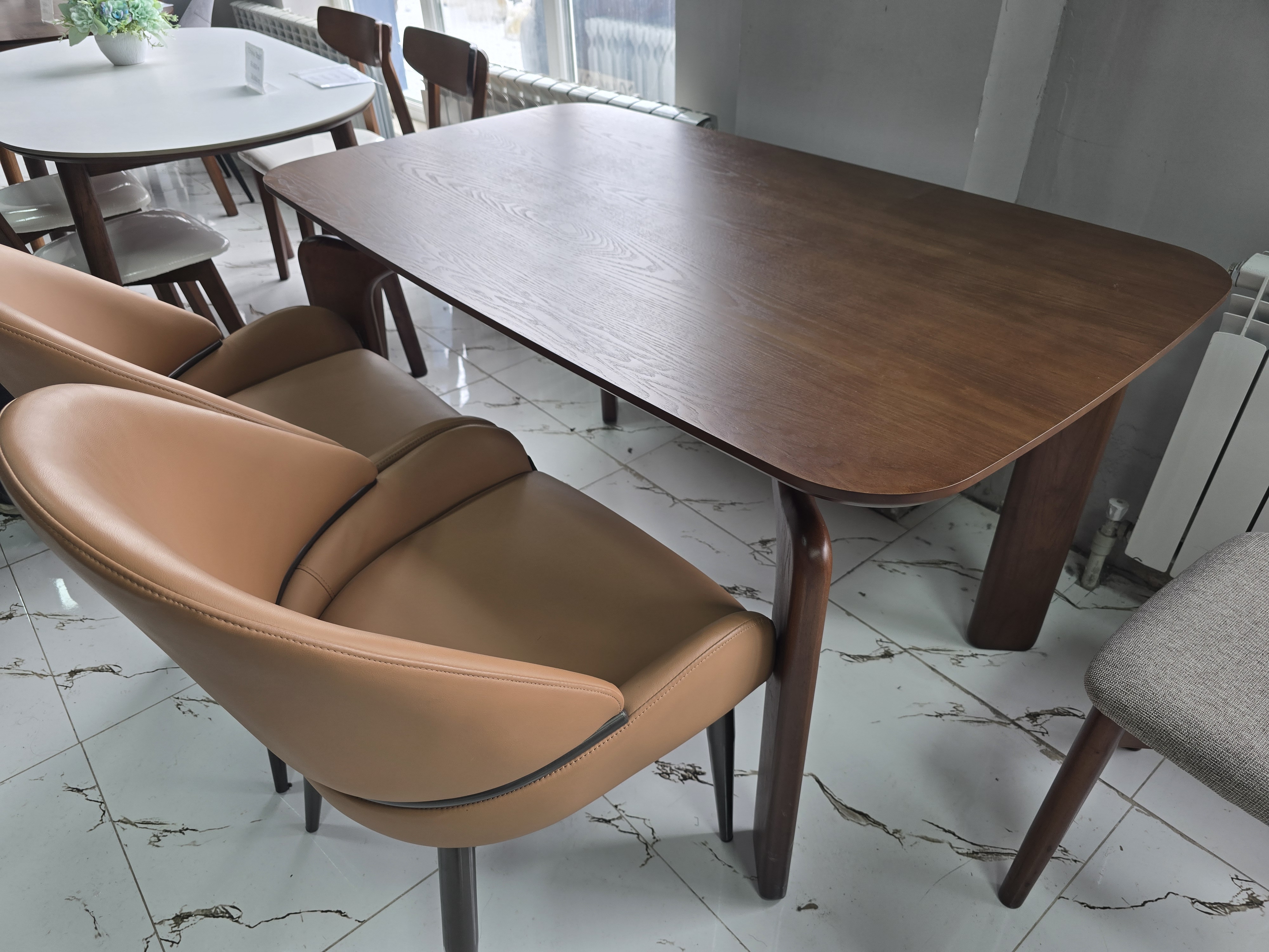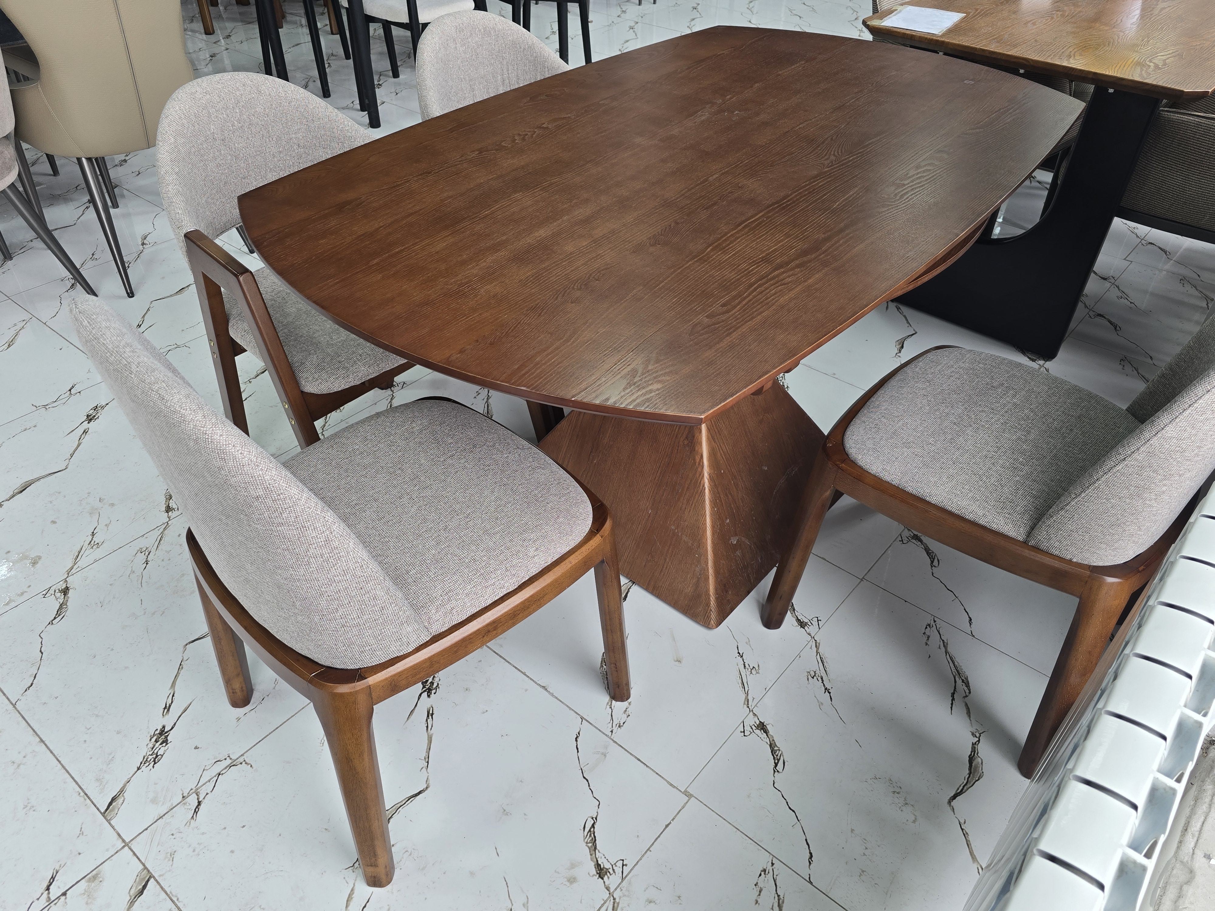 Форма стола овальный Материал стола ЛДСП, дерево Стол (ДхШхВ)160х85х75 Цвет серый, коричневый Тон однотонный Страна Казахстан