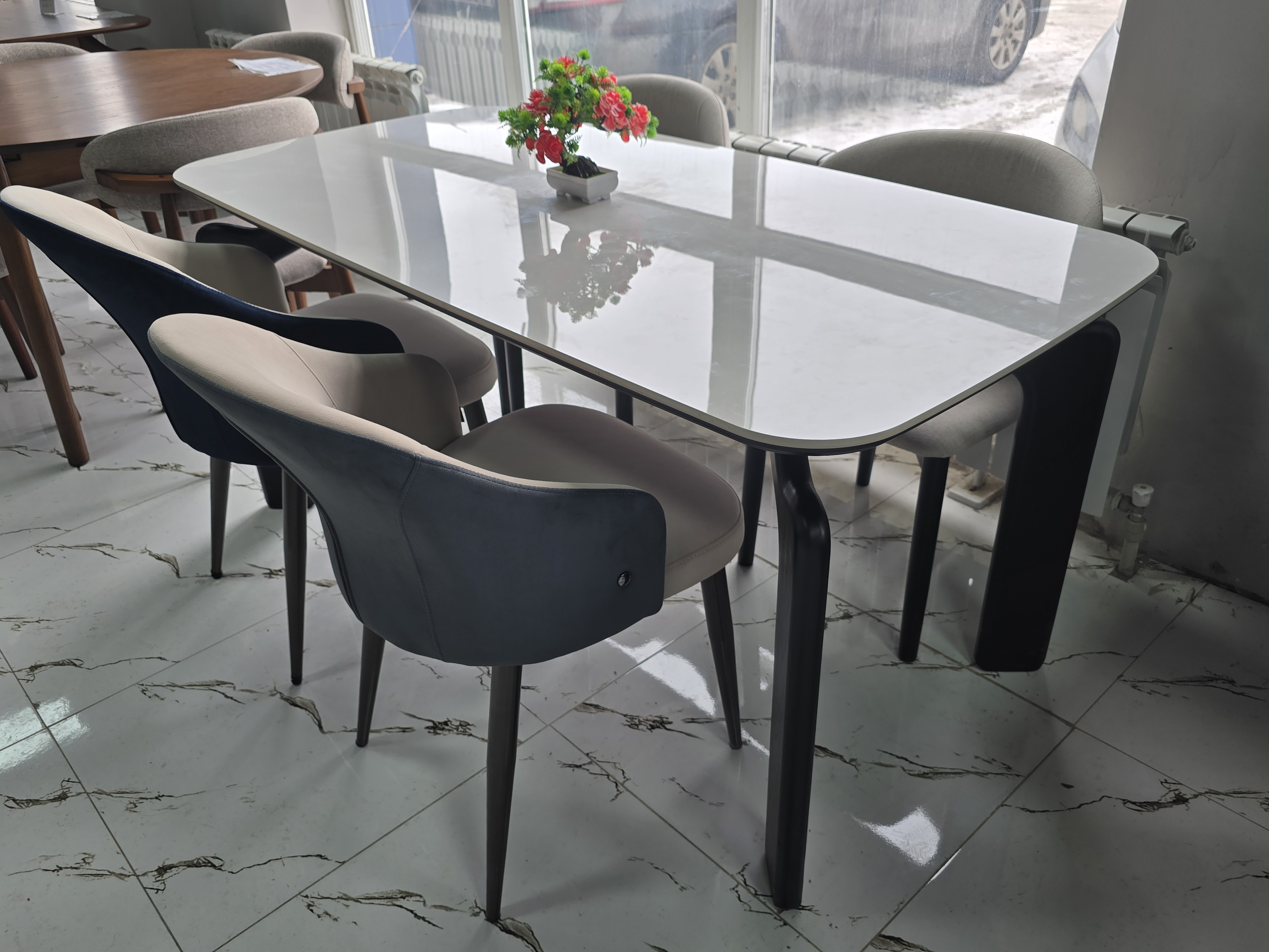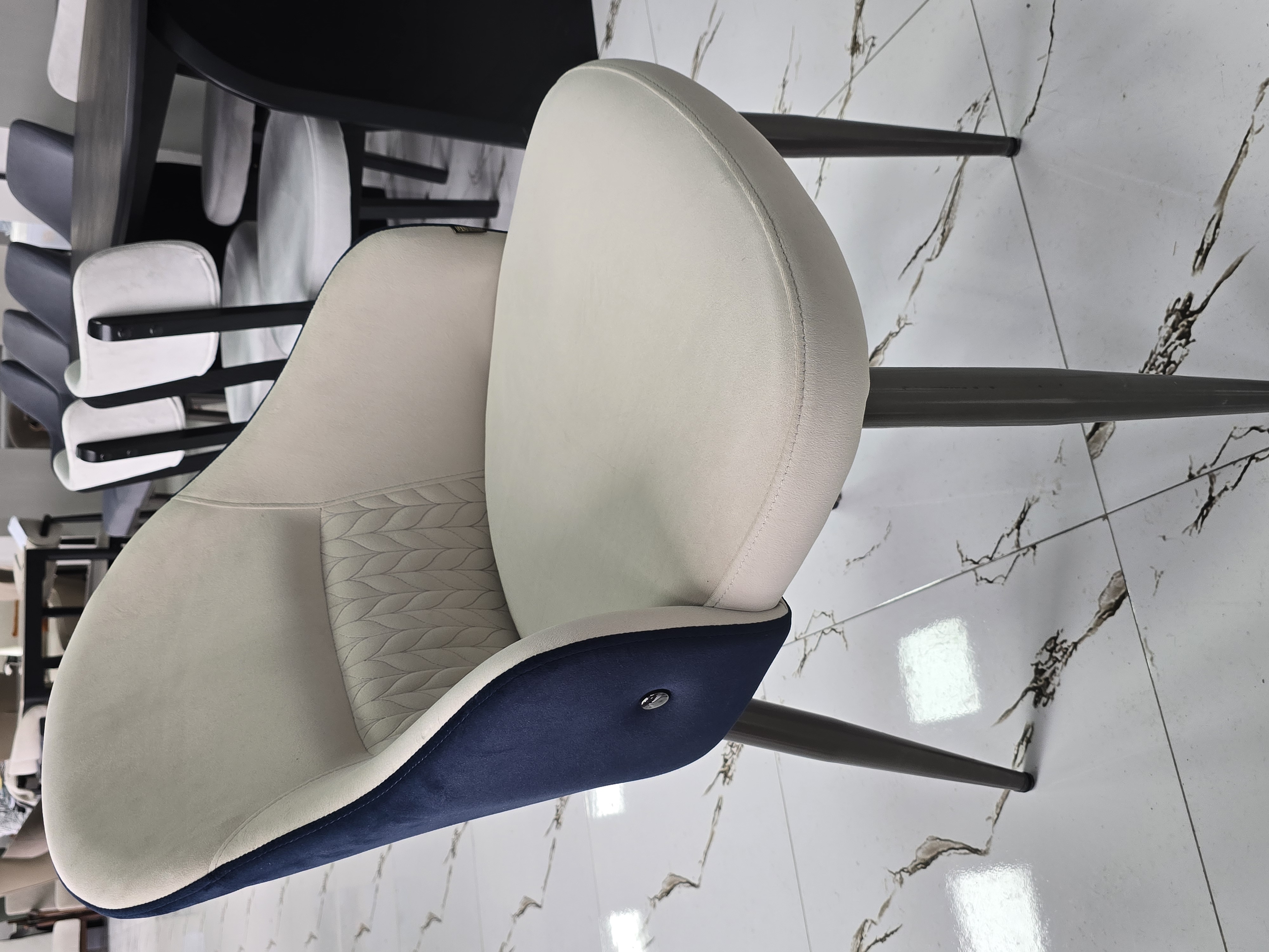 Материал металл Обивка велюр Жесткость сиденья средней жесткости Жесткость спинки средняя Особенности антивандальный материал, для кафе и ресторана (износостойкий) Высота85 см Ширина53 см Глубина46 см Форма фигурный Дизайн/стиль современный, модерн Цвет белый, синий Страна Китай