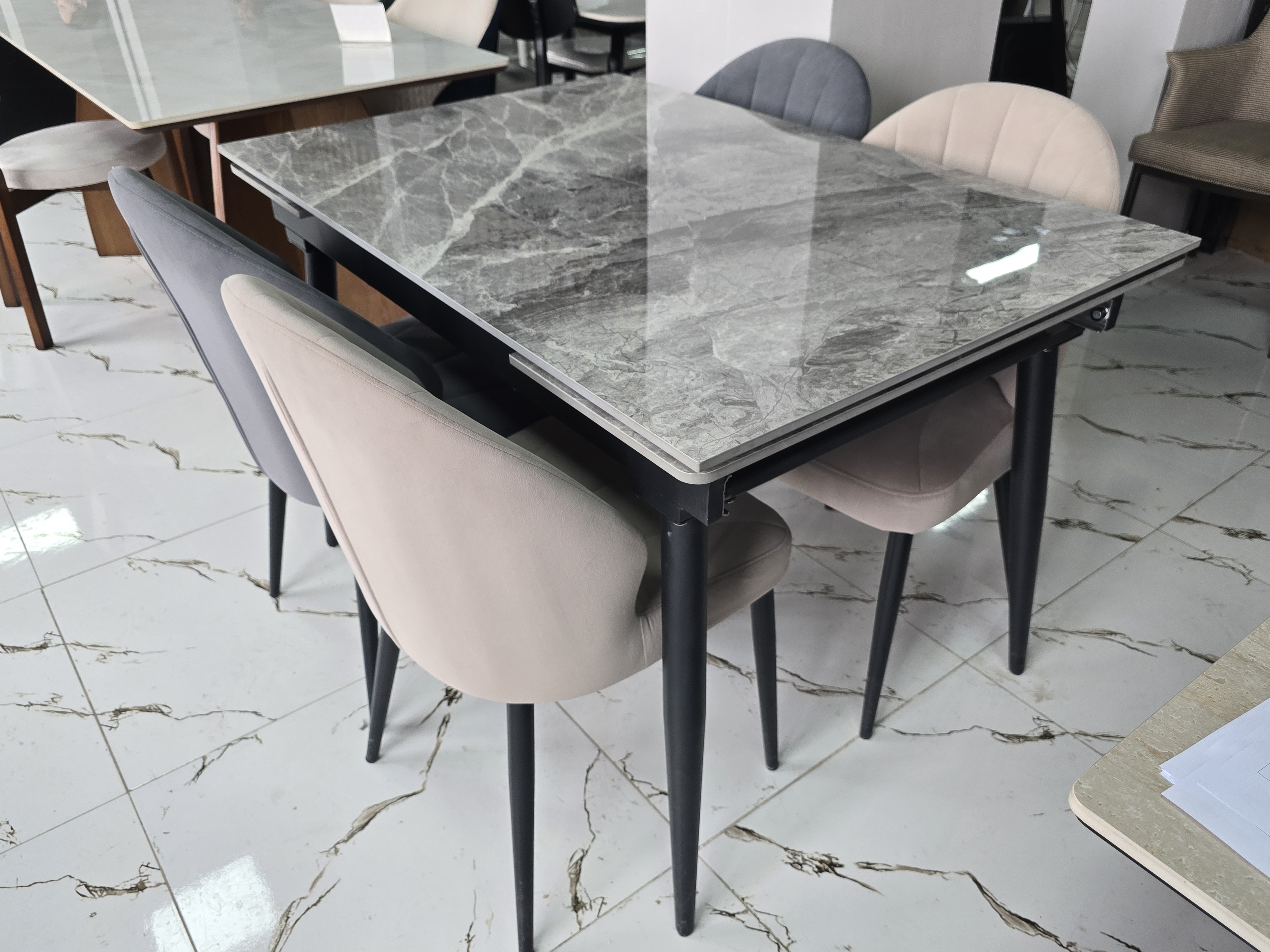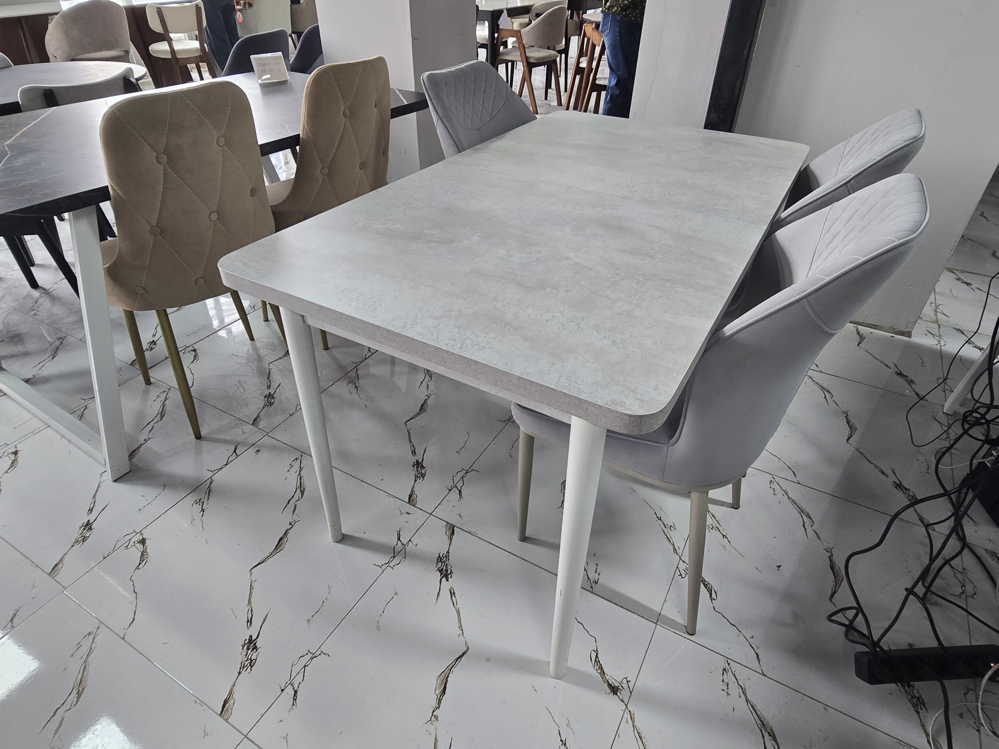 Форма стола прямоугольный Материал столаметалл Стол (ДхШхВ)200х80х78 см Стулья (ВхШхГ)80х52х50 Дополнительная информация Страна: Китай Длина140/200 см Ширина80.0 см Высота78.0 см цвет мрамор серый Каркас метал Цвет серый, синий Страна Китай