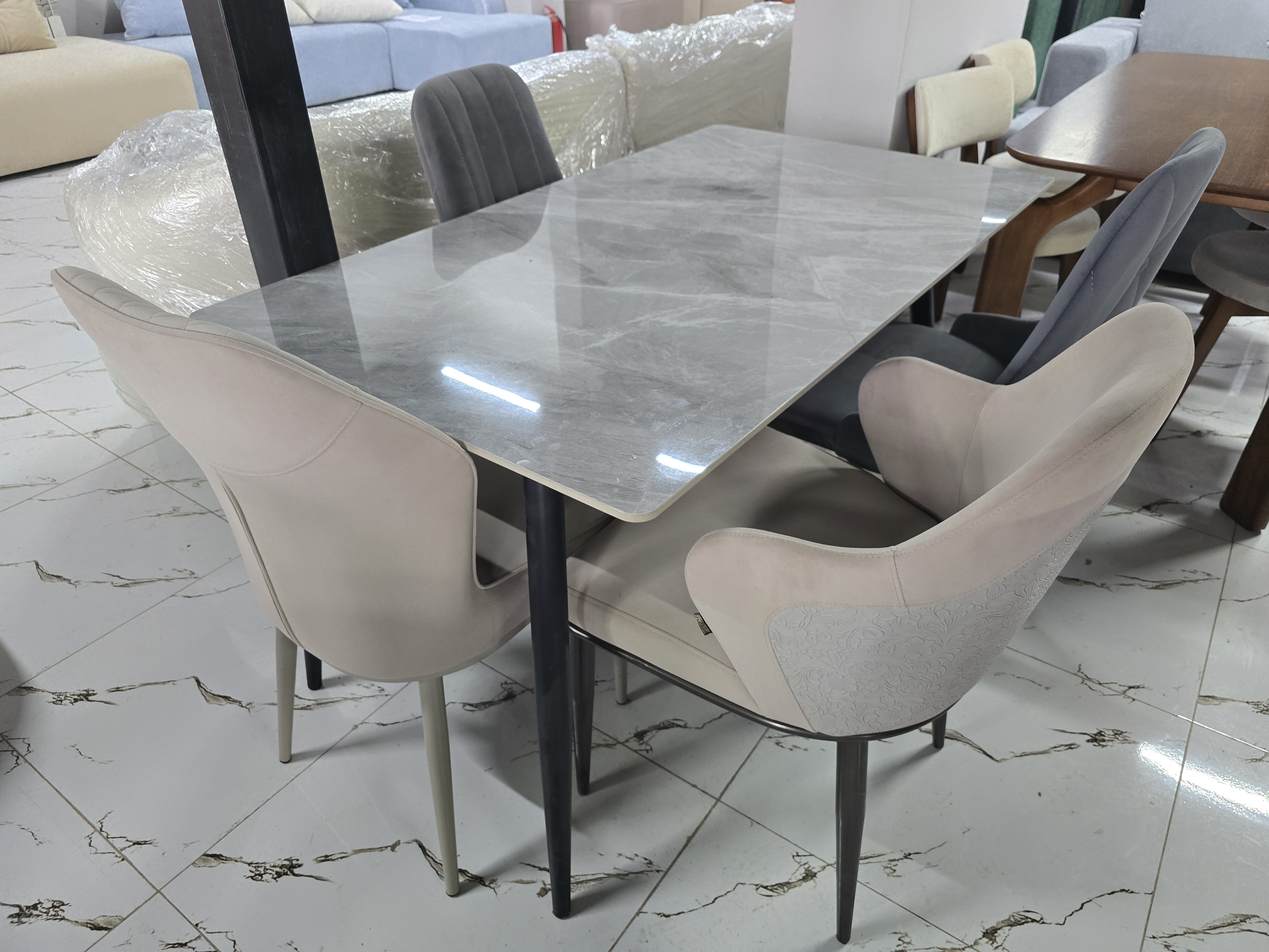 Форма стола прямоугольный Материал стола металл Стол (ДхШхВ)130х80х75 см Стол керамика Цвет серый Тон белый гранит Страна Китай