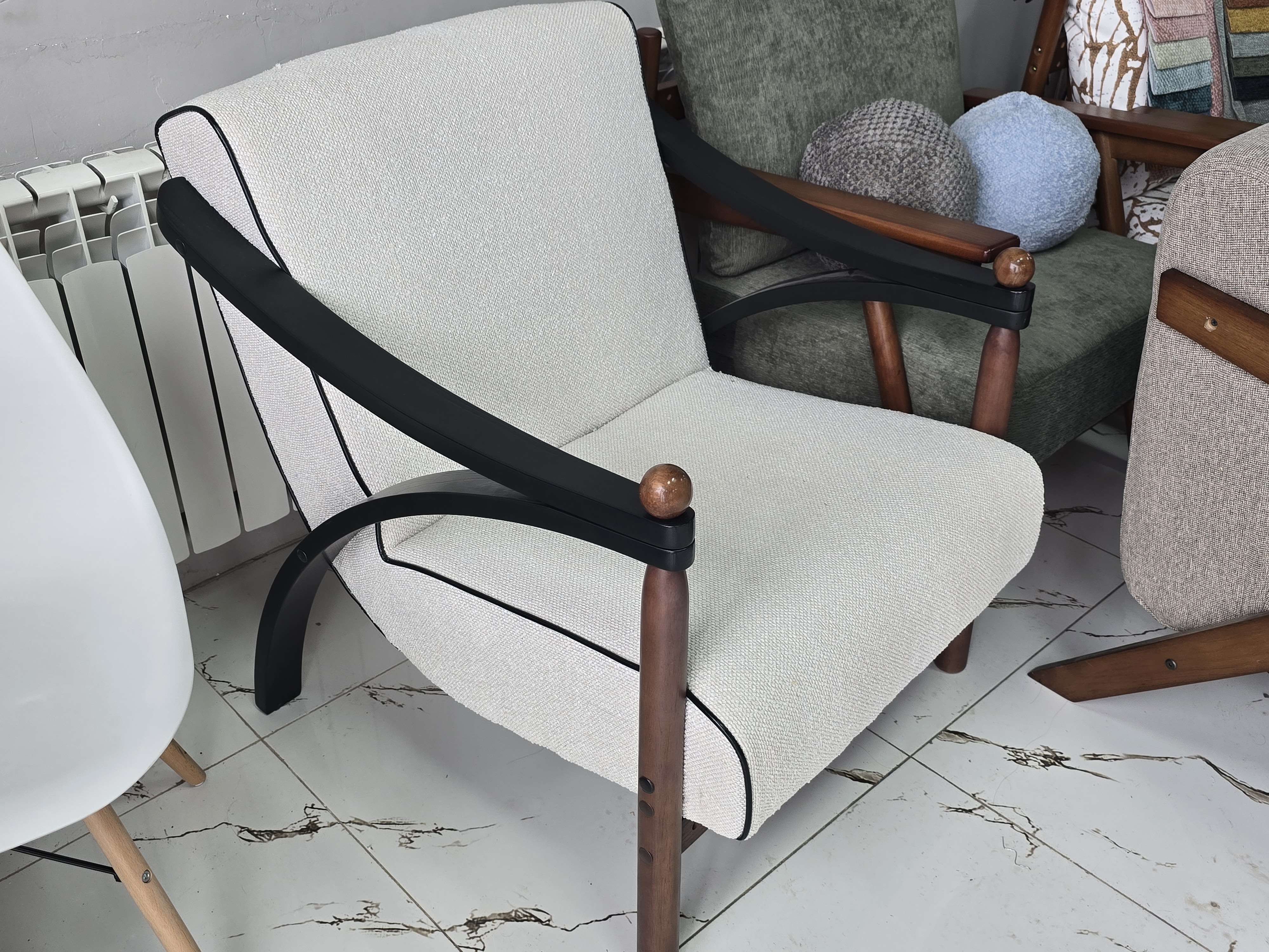 Материал металл Обивка ткань Жесткость сиденья средней жесткости Высота85 см Ширина55 см Глубина45 см Цвет чёрный, белый Страна Китай