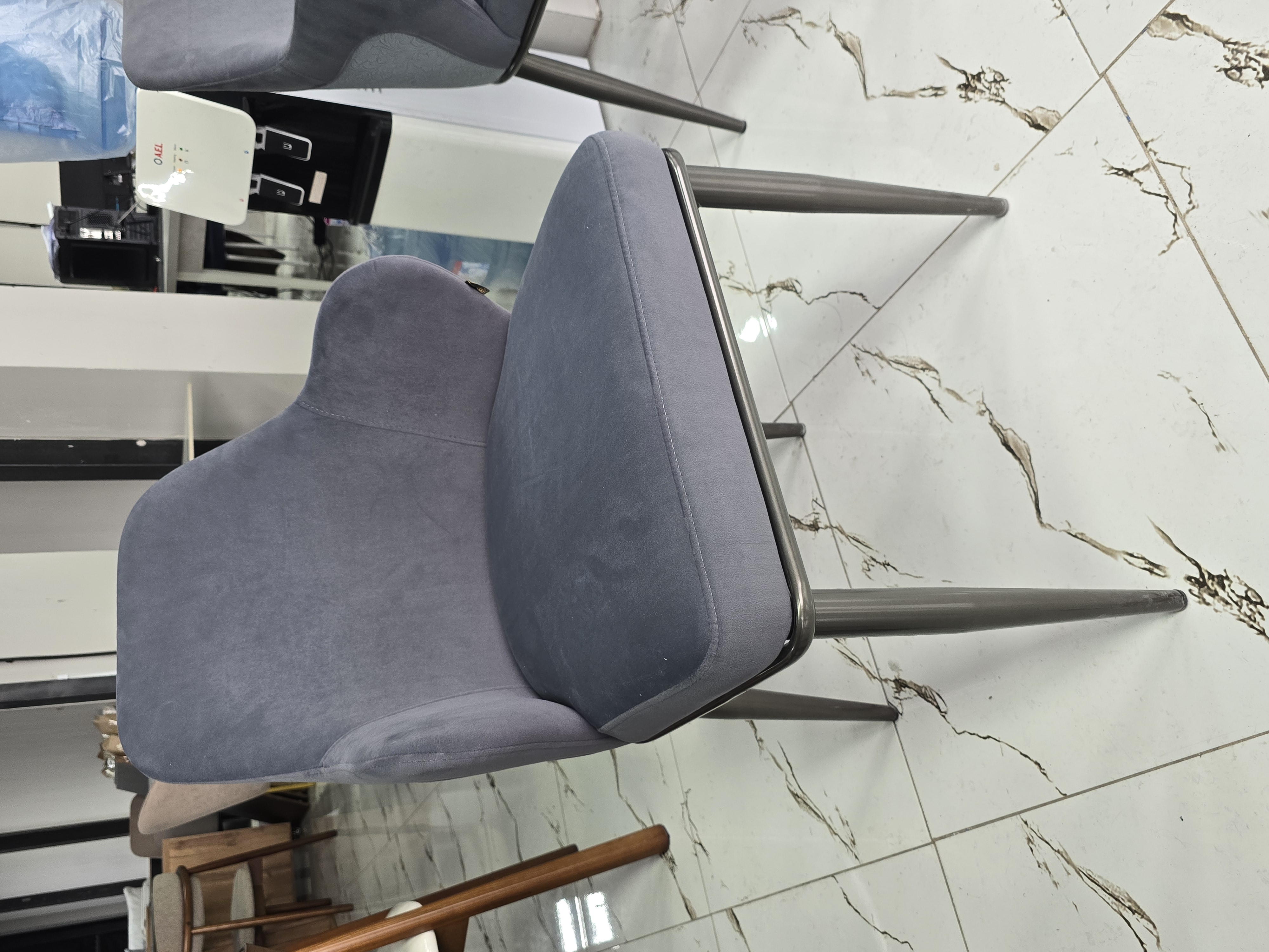 Материал металл Обивка велюр Жесткость сиденья средней жесткости Жесткость спинки средняя Высота95 см Ширина55 см Глубина55 см Форма фигурный Дизайн/стиль современный Цвет синий Страна Казахстан