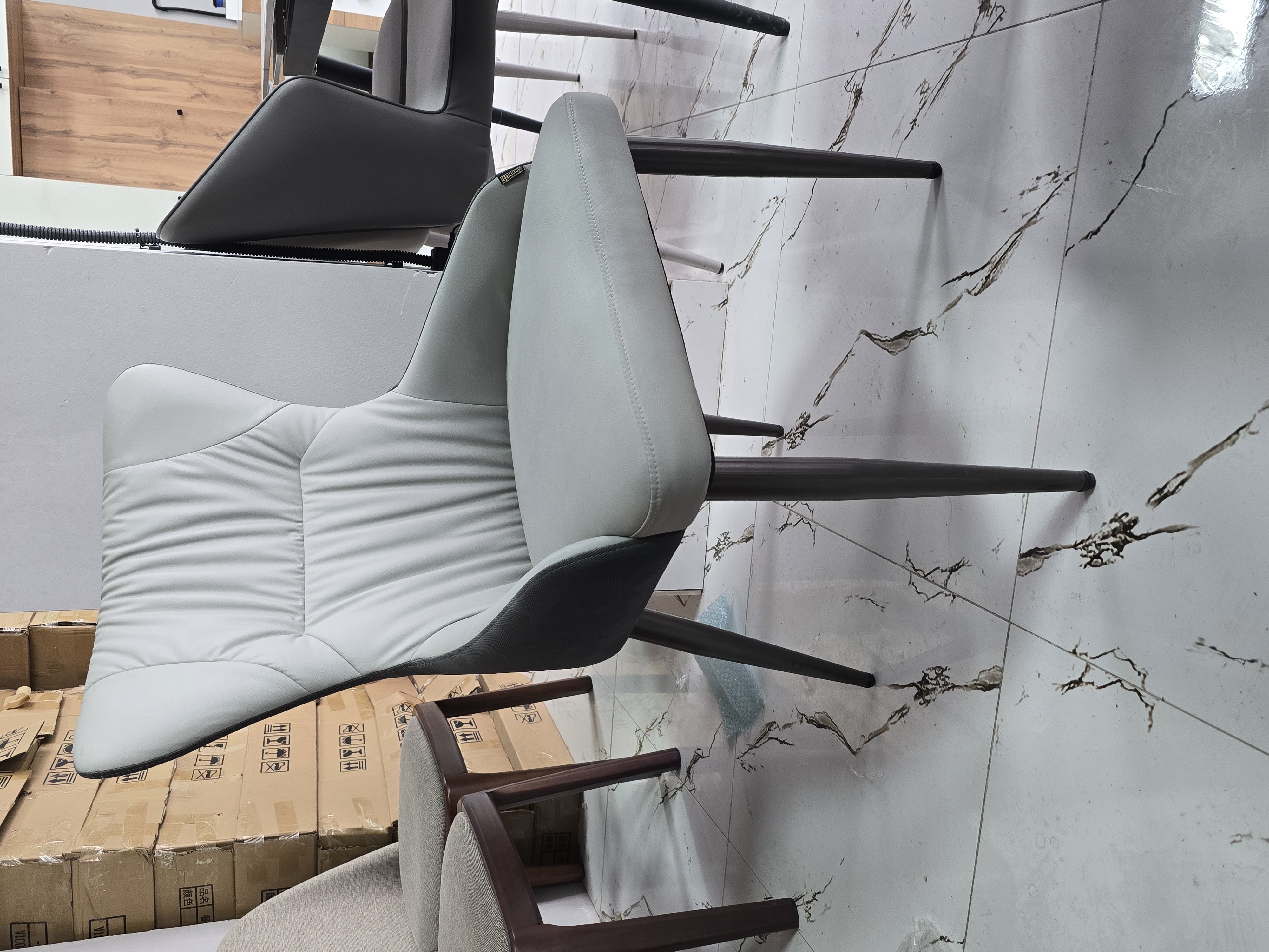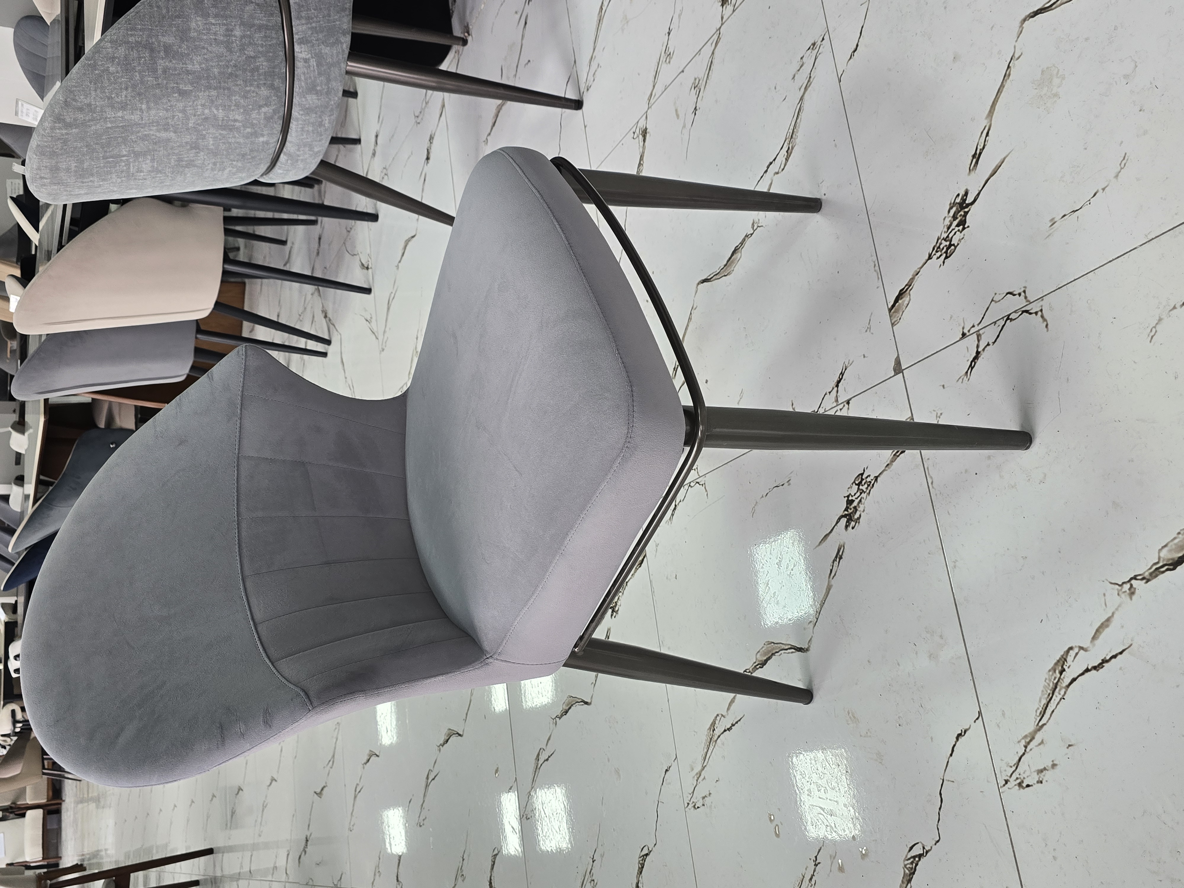 материал металл Обивкаэкокожа (искусственная кожа) Жесткость сиденья средней жесткости Жесткость спинки средняя Высота90 см Ширина50 см Глубина45 см Форма фигурный Дизайн/стиль современный, модерн Цвет серый Страна Китай
