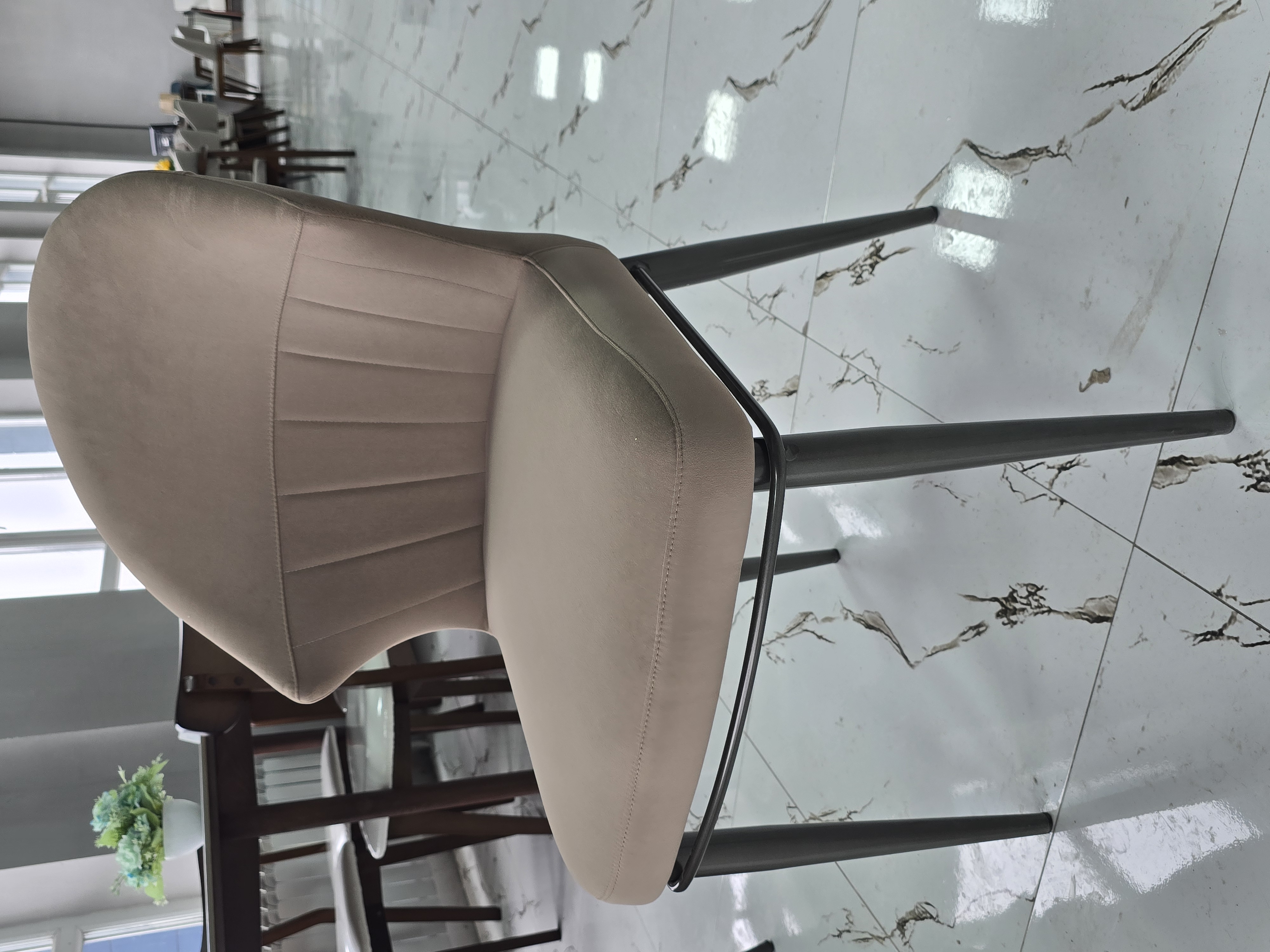 Материал металл Обивка велюр Жесткость сиденья средней жесткости Высота87 см Ширина51 см Глубина48 см Форма фигурный Цвет бежевый Страна Китай